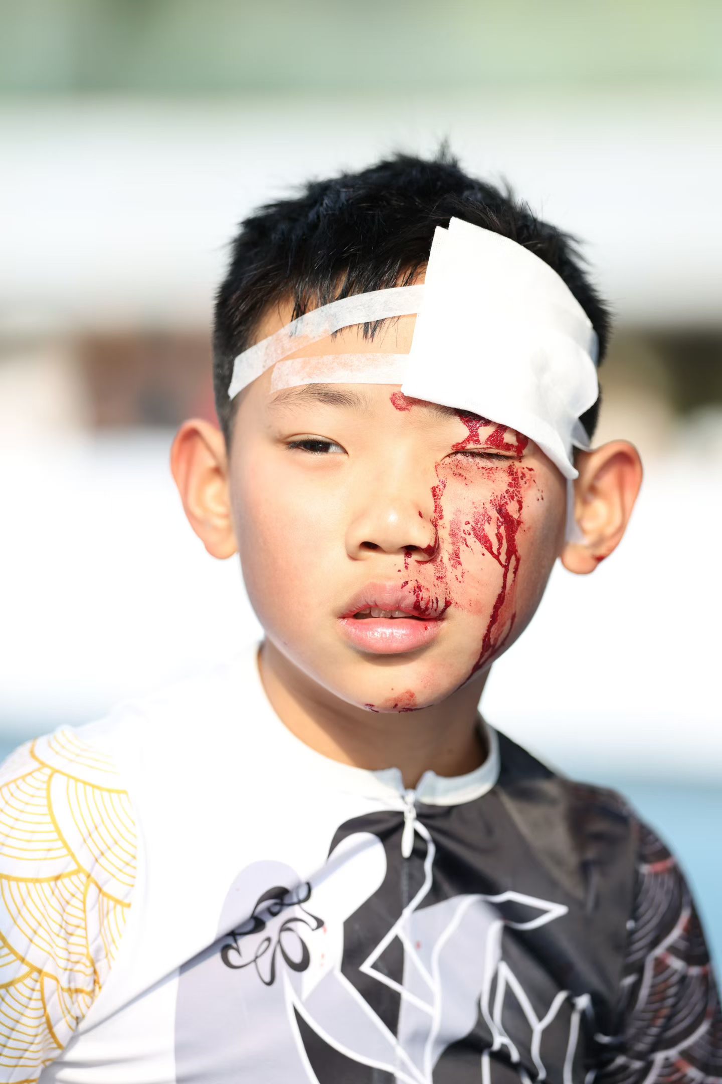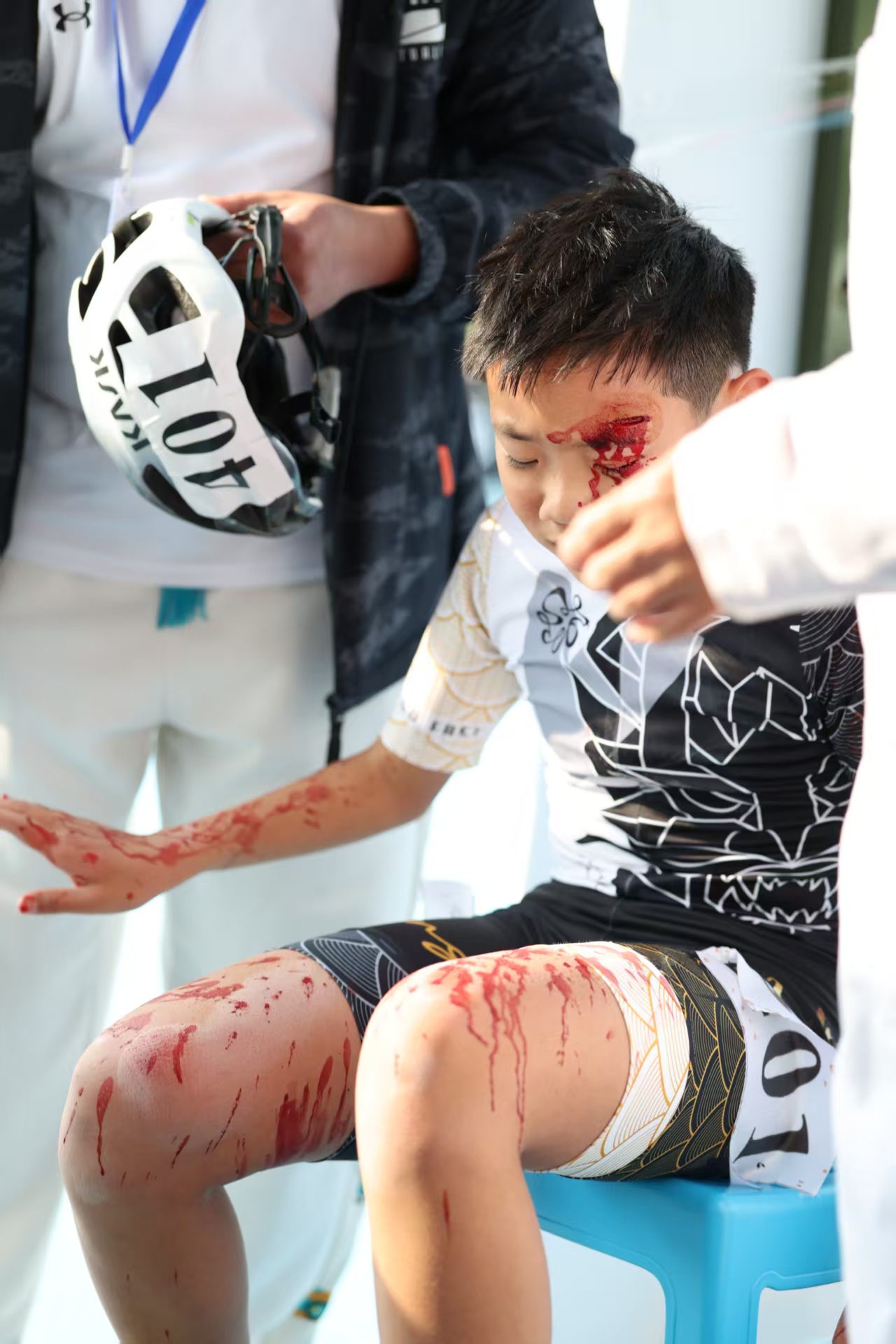 据付兴回忆,他看到全身是血的儿子在赛场上坚持,“身上的血很多,血是从头盔位置流出的。”付兴说,应该是伤到头部位置,如果是眼睛受伤了,根本无法参加比赛。自己当时跟组委会说让孩子不滑了,回头又看到孩子自己提速冲出去了。“自己也不忍心阻止儿子比赛。”